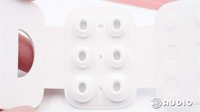 包装盒内附送的 XS(新增)、S、L 型号耳塞一览。
