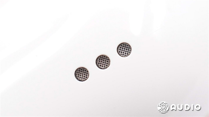 耳机外向式麦克风开孔特写。
