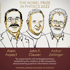 4日,瑞典皇家科学院宣布,将2022年诺贝尔物理学奖授予法国科学家阿兰·阿斯佩、美国科学家约翰·克劳泽和奥地利科学家安东·塞林格,以表彰他们为纠缠光子实验、证明违反贝尔不等式和开创性的量子信息科学所作出的贡献。