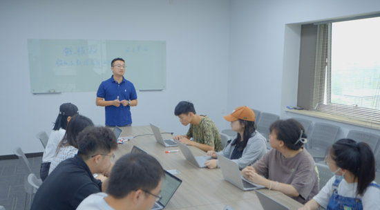 陈敛与团队开会讨论项目进展。