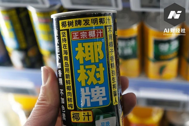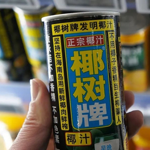 椰树集团招牌产品“椰树牌椰汁”多年延续“土味”风格,易拉罐采取高饱和度的黑、红、黄、蓝等颜色,简单的宋体大字“椰树”下面,是“xx年坚持在海南岛用新鲜椰子肉鲜榨,不用椰浆,不加香精当生榨”的广告语。纸盒包装颜色与易拉罐类似,文字下方有椰子和椰汁图案,装椰汁的玻璃杯上,同样印着四个宋体字“不加香精”。