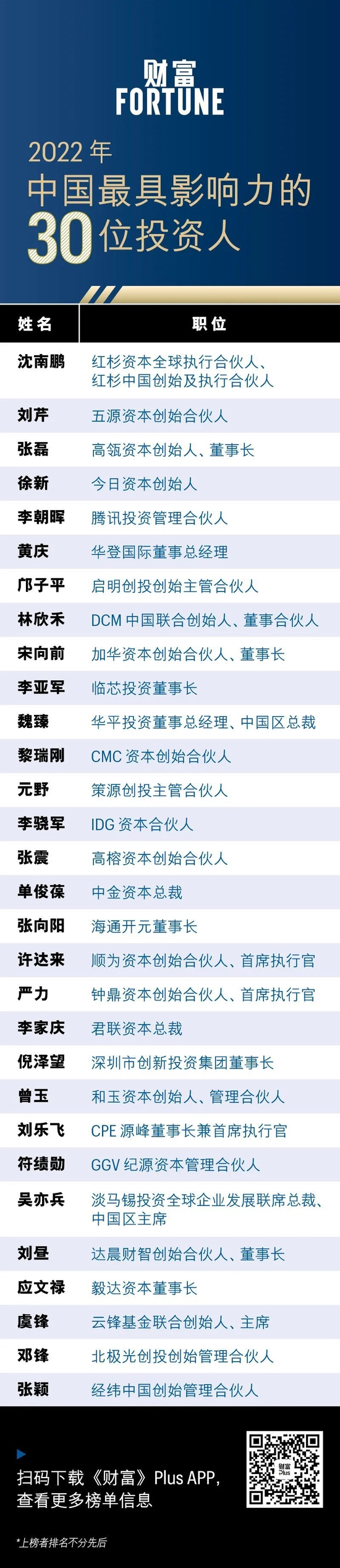 《财富》2022年中国最具影响力的30位投资人:沈南鹏、张磊、徐新等上榜