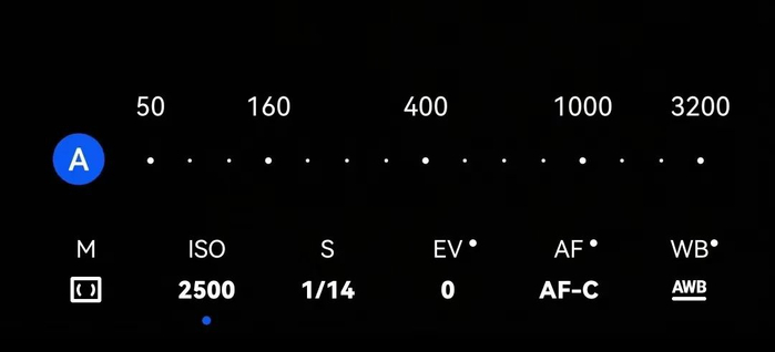 平时拍照时,将其设定在 A / Auto / 自动就可以,手机会根据测光结果,自动选择一个合理的感光度数值。