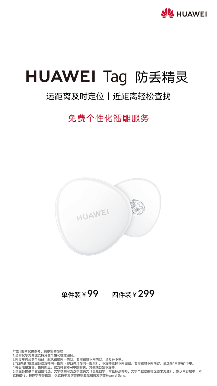 据华为官方消息,华为商城全新上线免费个性化镭雕服务定制你的专属防丢精灵,支持文字和图案镭雕。