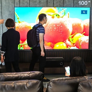 不过,记者也注意到,在低价彩电遍地皆是的同时,高端彩电的价格依然稳固,104万元一台的110英寸Micro LEDC电视、77万一台的可卷曲OLED电视、49万一台的138英寸LED触摸电视也都有销售。