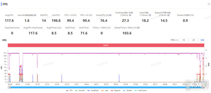 使用性能狗测试《王者荣耀的》的稳定性,开启高画质模式,游戏帧率117.6fps,非常稳。多人PK的时候,帧率几乎没有波动,非常稳。玩了半小时游戏后,几乎感觉不到发热。看来,骁龙870的功耗确实不错。