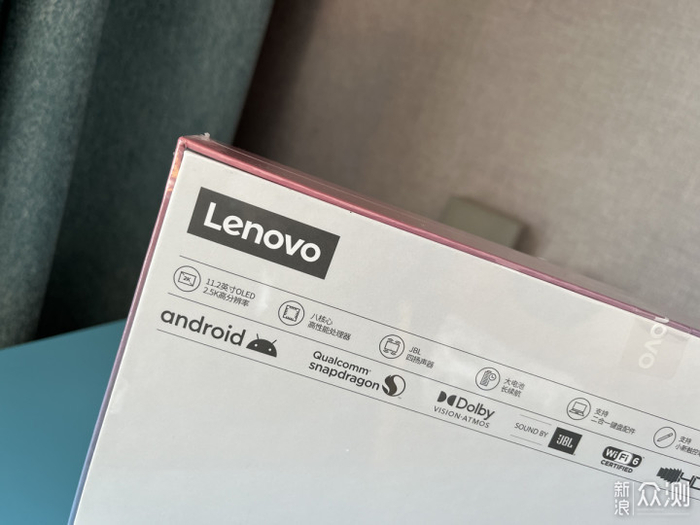 小新Pad 2022 Pro骁龙版的外包装非常时尚,使用蓝色和红色两种色调搭配,联想小新这几个字非常醒目。
