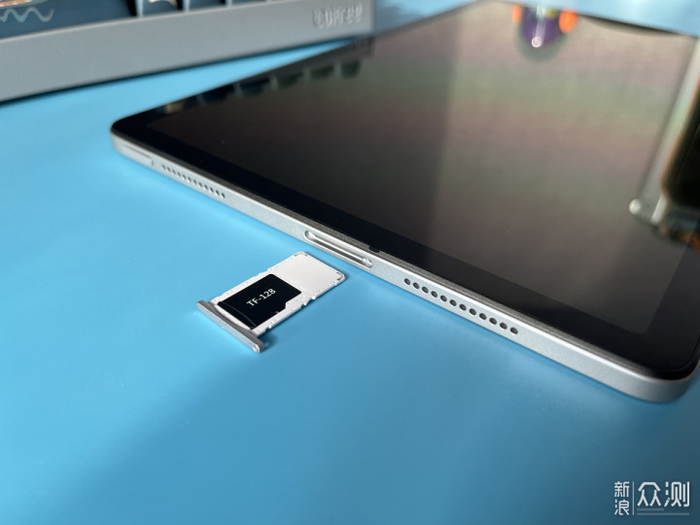 电源键位于机身的顶部,2颗扬声器中间是存储卡槽,最高支持1TB的MicroSD存储卡拓展。