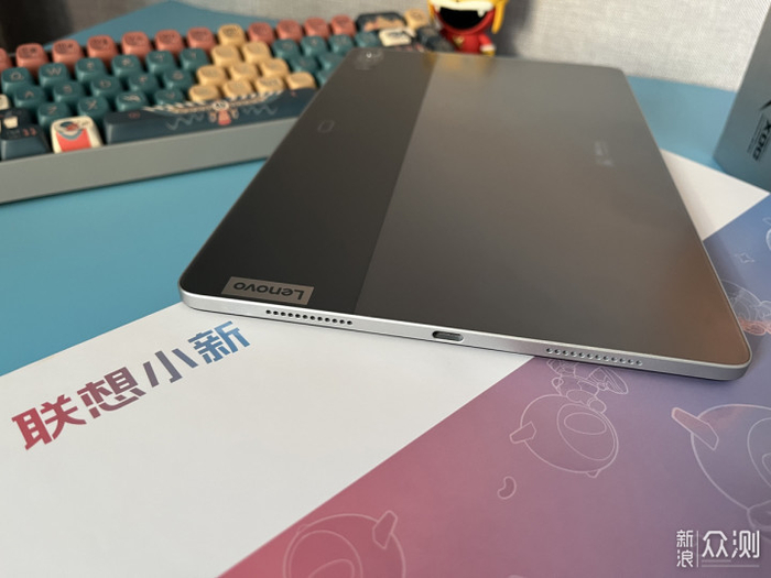 Lenovo的品牌标识也放在了机身的左下角,与后置摄像头模式形成响应。除此之外,平板背部没有任何多余的元素。时尚简洁的风格,符合年轻用户的审美。