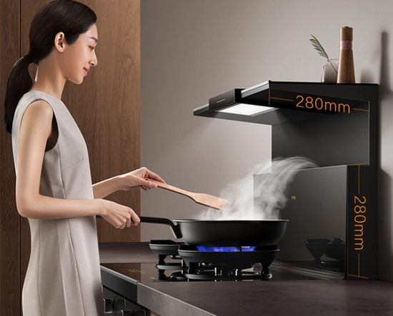 具体到产品方面,比起集成灶(如火星人E6BC、亿田D2ZK等)最高只能达到18m/min的风量和400Pa的静压,方太集成烹饪中心主力机型的核心性能可以达到22m最大风量&850Pa最大静压;顶级性能产品甚至可以达到26.5m最大风量&1100Pa最大静压。