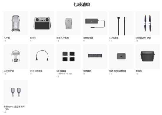 该套装还额外包含 2 块电池、充电管家、ND 镜套装、单肩包等众多配件。