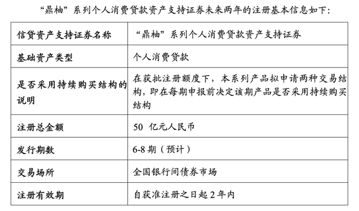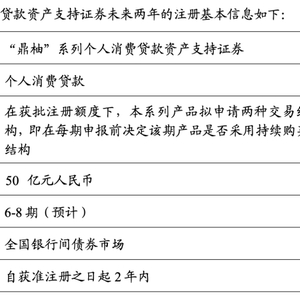 报告显示,中原消金拟以个人消费贷款资产设立特定目的信托,由华润深国投信托担任受托机构及发行人,发行“鼎柚”系列个人消费贷款资产支持证券,以信托财产所产生的现金流支付证券的收益。