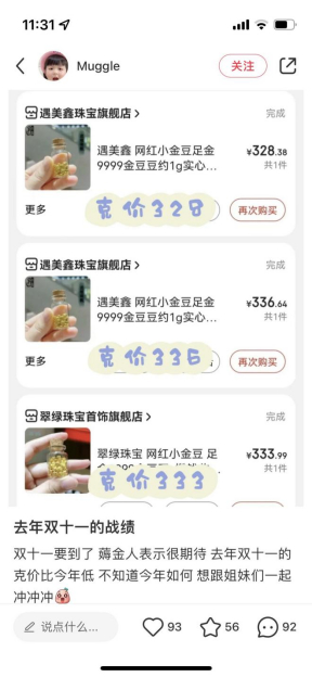 另一名网友也表示,其不会选择在直播上买金豆,“毕竟自己不懂得如何验真假,低价金豆多半是坑。”
