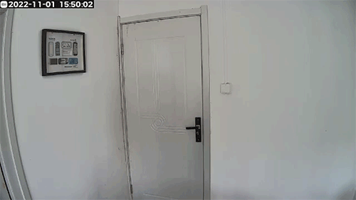 这是白天开门时捕捉到的画面,白天室外有光线,楼道的声控灯也自动点亮,画面整体非常清晰,色彩欢颜也很不错,对面住户贴的对联都可以看到。