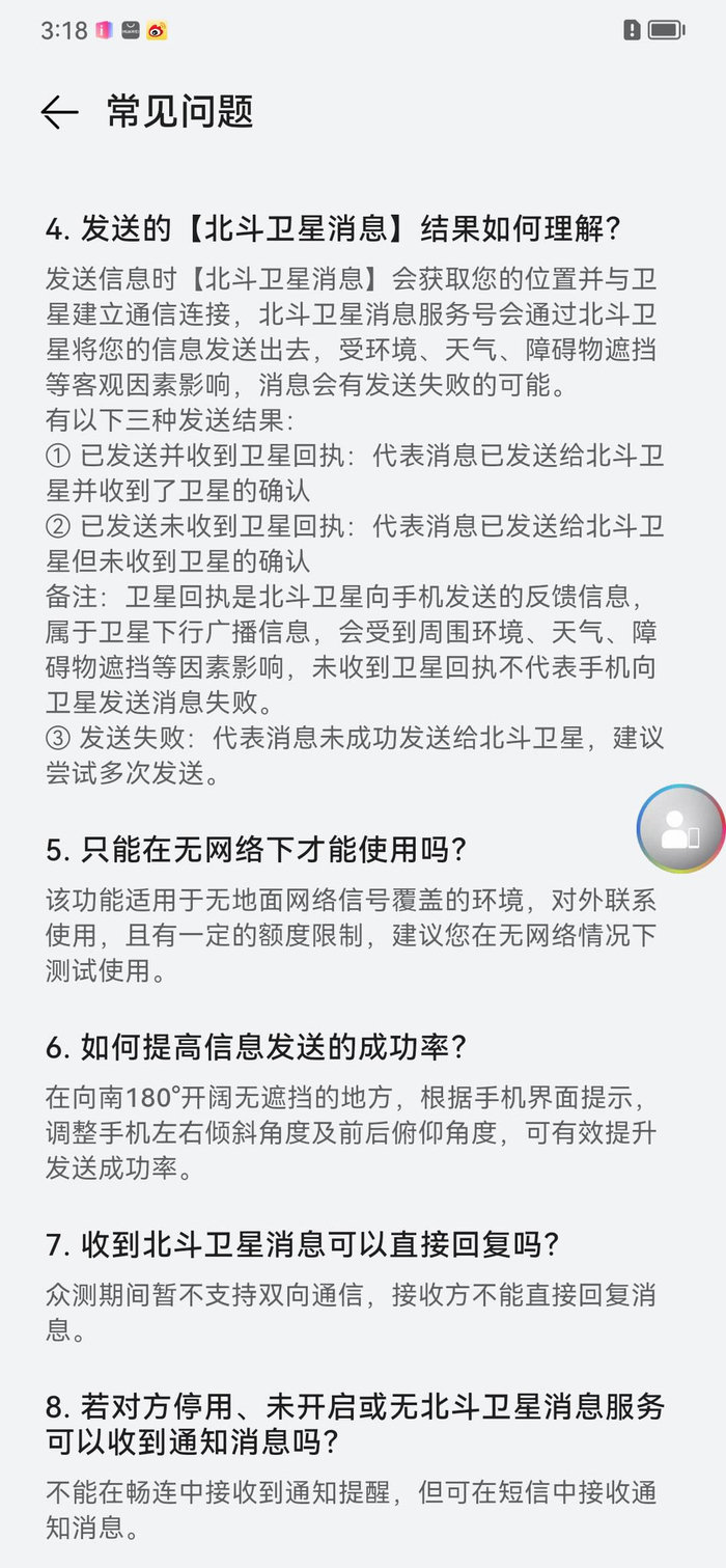 记者实测,发送北斗卫星消息,对空间的要求较高,在开阔无遮挡的地方,更容易发送成功。换言之,更适用于户外的受困场景中,在室内或是电梯中很难发送,且低电量时候,会影响发送成功率。