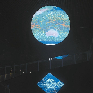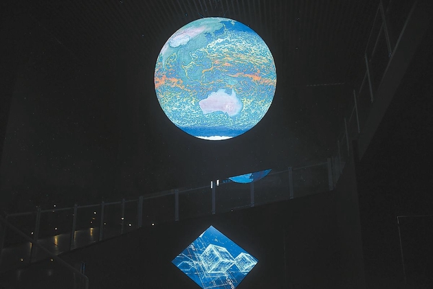 地球系统数值模拟装置——“寰”在北京怀柔科学城东部组团通过验收。展厅中悬挂着直径3米、清晰度达到5K的LED球形屏,装置模拟实验的部分结果会通过球体进行可视化直观展示。