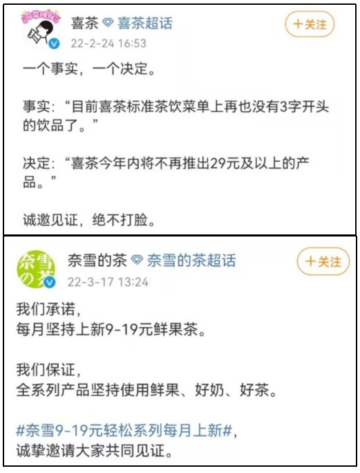 对于喜茶的“自降身价”,这些高端玩家们不但没有嗤之以鼻,还纷纷呼应。