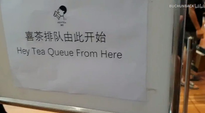 新加坡第一家店开业,喜茶自信的立了一块牌子:排队由此开始。