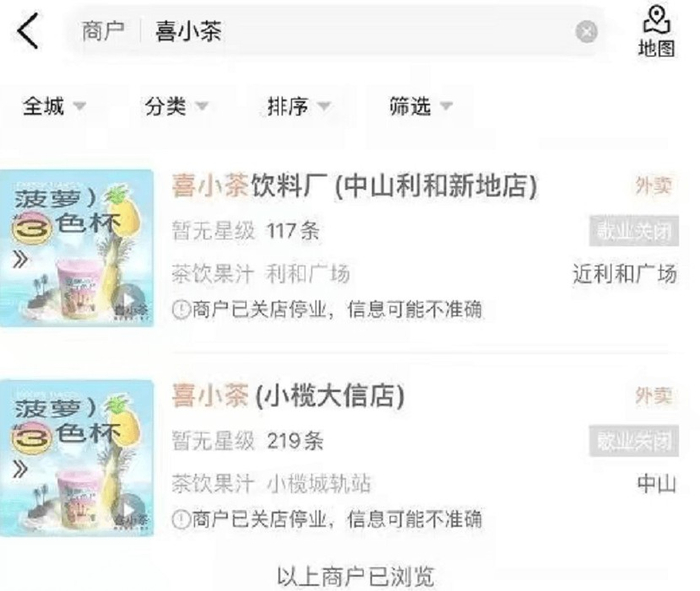 而从今年4月开始,喜小茶深圳、佛山、东莞等地方门店就开始陆续关闭,随着最后一家门店的关闭,喜小茶算是彻底退出了奶茶市场。