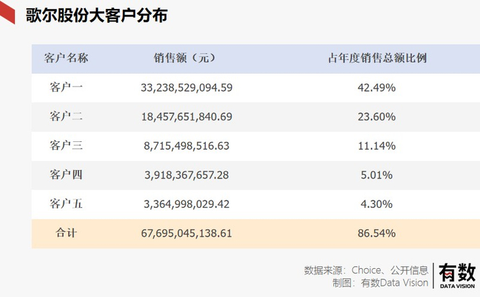 歌尔生产的大部分产品是苹果的AirPods,在2021年年报中,苹果正是那位代号“客户一”,营收占比42.49%的大客户。