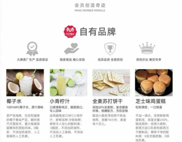 从自有品牌来看,M会员商店还拥有丰富的自有品牌商品,例如椰子水、小青柠汁、全麦苏打饼干、芝士味鸡蛋糕,等等。