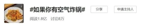 曾经登上微博热搜的“懒人神器”空气炸锅,当时的词条阅读量高达1.8亿。/ 微博截图