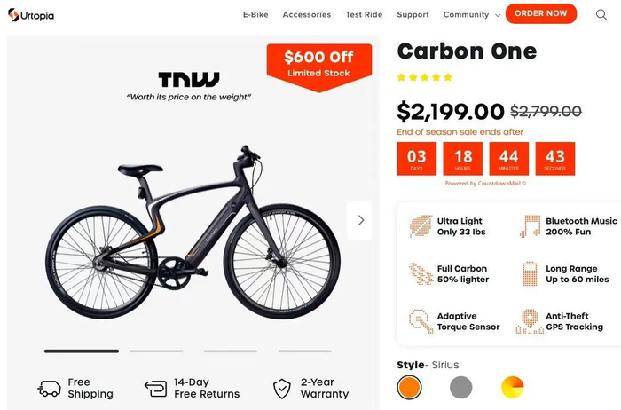 今年 2 月,URTOPIA 完成近千万美元 Pre-A 轮融资,由光速中国和 DCM 共同领投,产品主要面向欧美市场,平均售价 2500 美元。URTOPIA由深圳哲轮科技有限公司一手推出,其创始团队可谓豪华,均来自清华北大。创始人张波本科毕业于清华大学,在美国明尼苏达大学读博士期间养成了骑行的爱好,并在此期间接触了跨境电商。