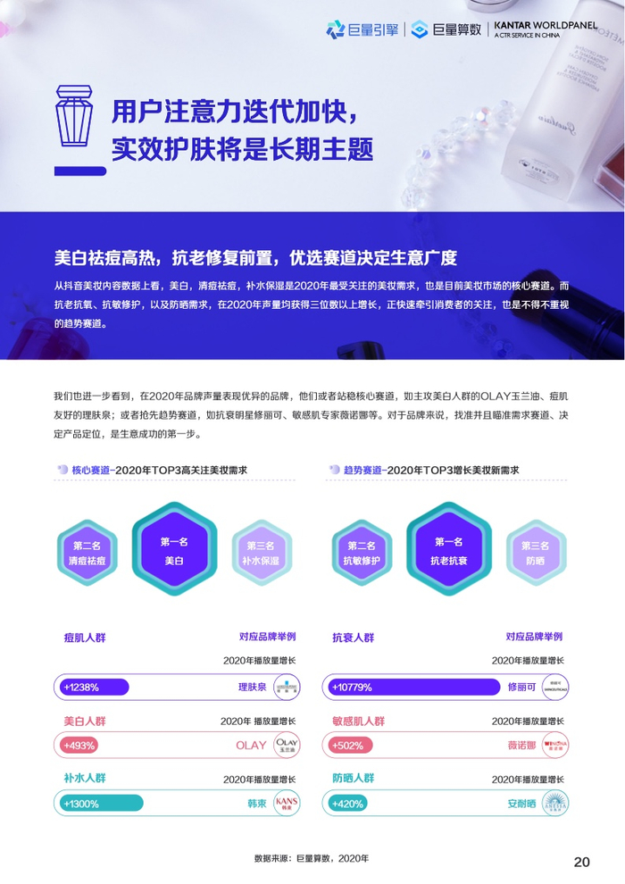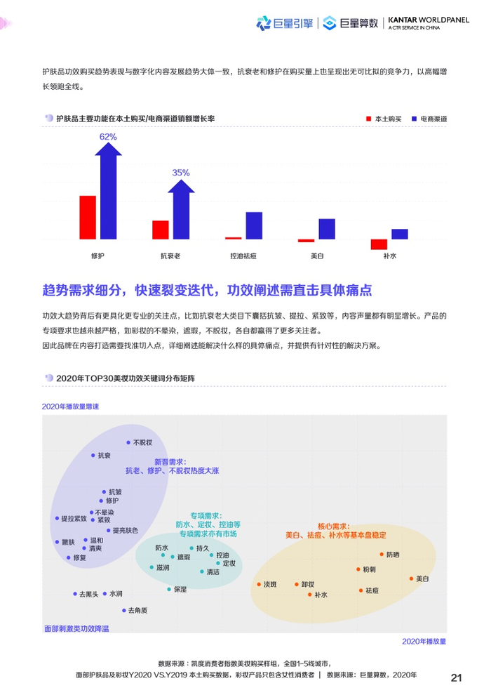 中国美妆兴趣人群最爱护肤,中国也是全球最大护肤品零售市场。随着用户成熟度不断提高,功效、成分成为中国消费者选择护肤产品最重要的决策因素。消费者不再唯大牌论,护肤品牌也更关注细分功效和成分的沟通策略,旨在把握趋势,赢得市场青睐。