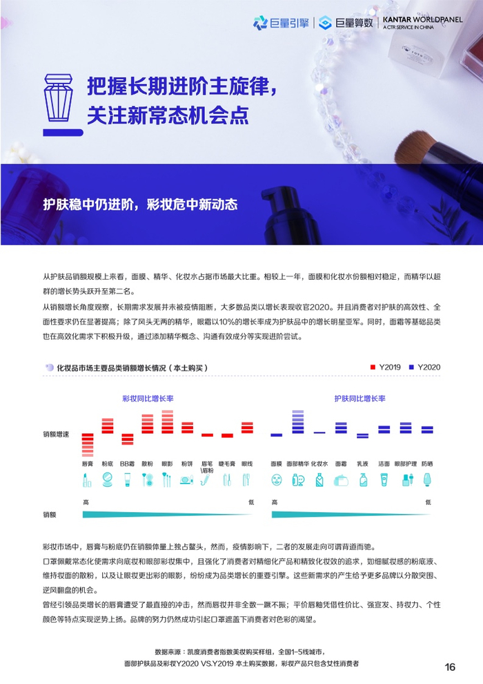消费者将目光聚焦于本我诉求,更看重产品功效本身;伴随美妆达人的内容传播,成分成为消费者满足功效诉求的选择依据。