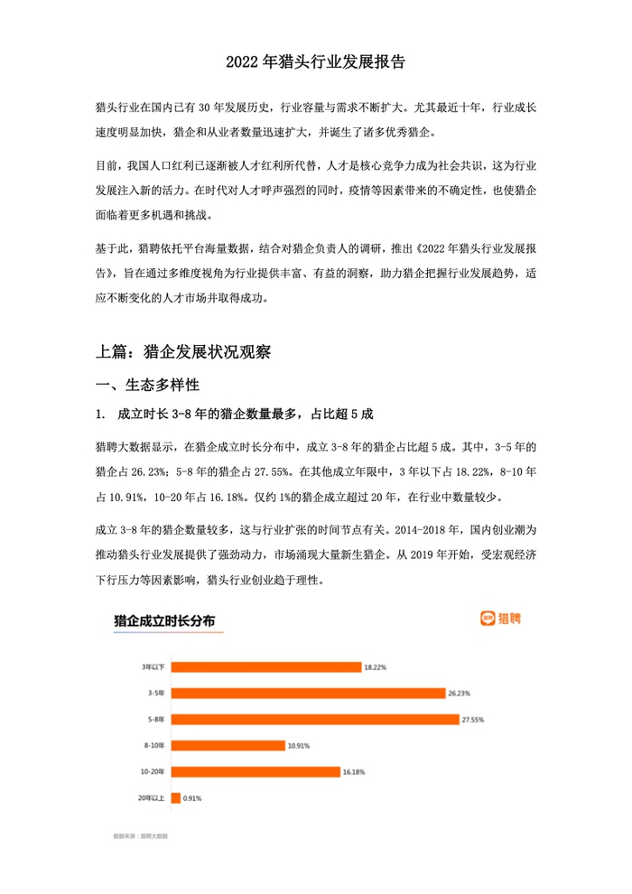 基于此,猎聘依托平台海量数据,结合对猎企负责人的调研,推出《2022年猎头行业发展报告》,旨在通过多维度视角为行业提供丰富、有益的洞察,助力猎企把握行业发展趋势,适应不断变化的人才市场并取得成功。
