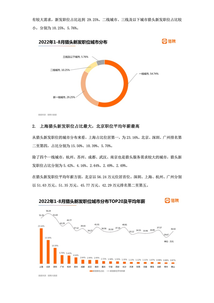 上海猎头新发职位占比最大,北京职位平均年薪最高