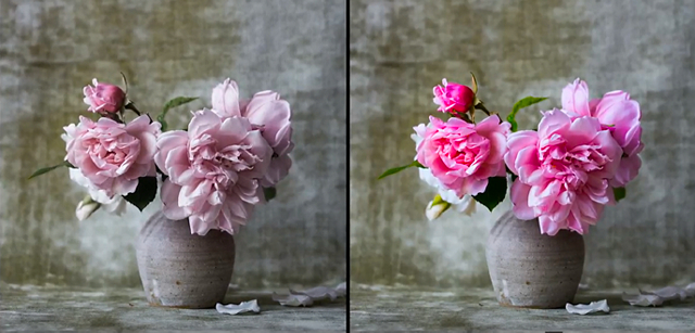 (左)原始照片,(右)使用实时语义分割捕捉照片时达到的阴影和色彩效果。