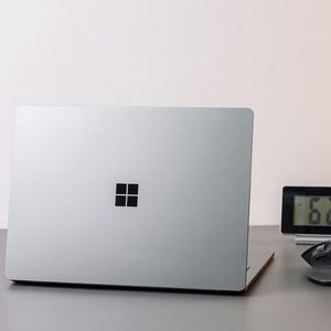 从外观来看,微软Surface Laptop 5采用了简约的设计,A面只有一个微软经典的田字形logo就再无其它浮夸的元素,但机身采用了高品质的阳极氧化铝金属工艺,所以质感相当出色。这款产品提供有13.5英寸和15英寸两个不同大小的版本,这次评测体验的是13.5英寸的产品,相对于15英寸的版本来说确实要更加轻便一些,机身重量仅有1325.3g,拿在手上也不会有明显的沉重感。