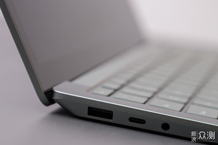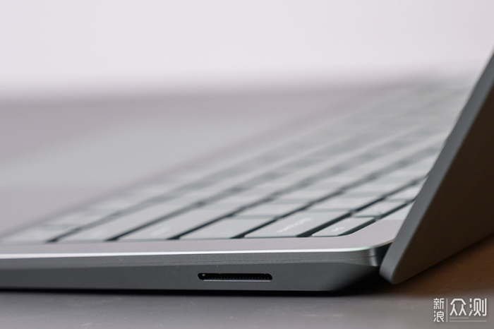 由于是主打办公的轻薄本定位,因此Surface Laptop 5的接口配置不算很丰富,机身的左侧配有一个USB Type-A 3.1接口,一个USB Type-C接口以及一个3.5mm有线耳机接口,机身右侧仅提供了一个Surface Connect磁吸电源接口,因此对于有外接多个电脑外设需求的用户来说,他们就得跟苹果的MacBook用户一样常备扩展坞配件了。