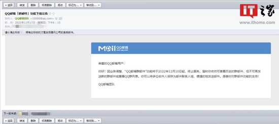 QQ邮箱“群邮件”功能将于12月10日起终止服务