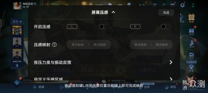 首先说一下iQOO 10传奇版的屏下双控压感功能,通过这个设置,在屏幕区域就能实现像游戏手柄上的肩键功能,很好的弥补了手机没有这个功能的遗憾。