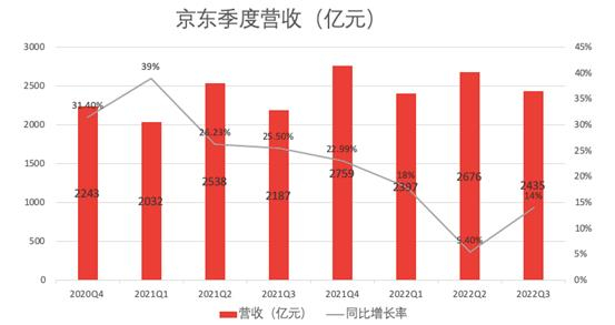 京东财报:2022年Q3京东净收入为2435亿元 同比增长11.4%