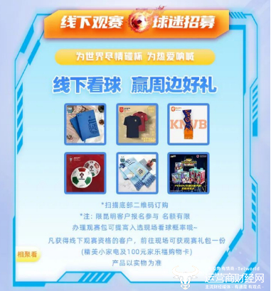 值得一提的是,凡获得云南移动线下观赛资格的球迷,前往现场就可获得观赛礼包一份,有机会享世界杯周边好礼以及精美小家电、100元购物卡。