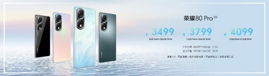 全新荣耀80、荣耀80 Pro官方售价分别为2699元起、3499元起。