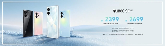 荣耀80和荣耀80 Pro将于11月23日17:00开启预售,12月2日10:08正式开售;荣耀80 SE将于11月23日17:00开启预售,12月9日10:08正式开售,参与购买的用户可享受首发优惠。