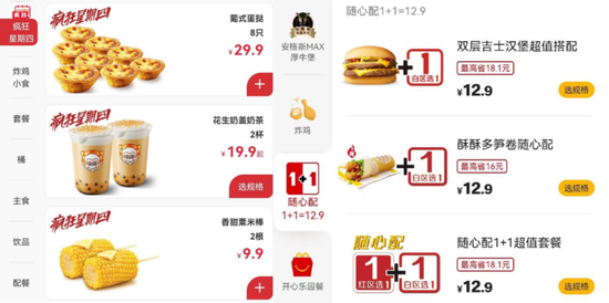 肯德基“疯狂星期四” VS 麦当劳“1+1随心配”