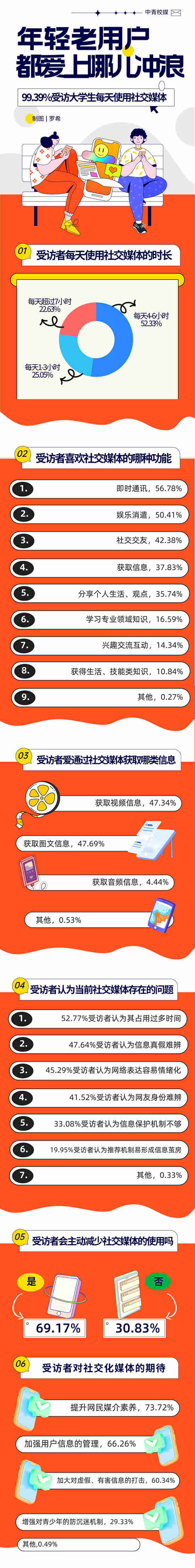 调查:99.39%受访大学生每天使用社交媒体 年轻老用户边“冲浪”边“治水”