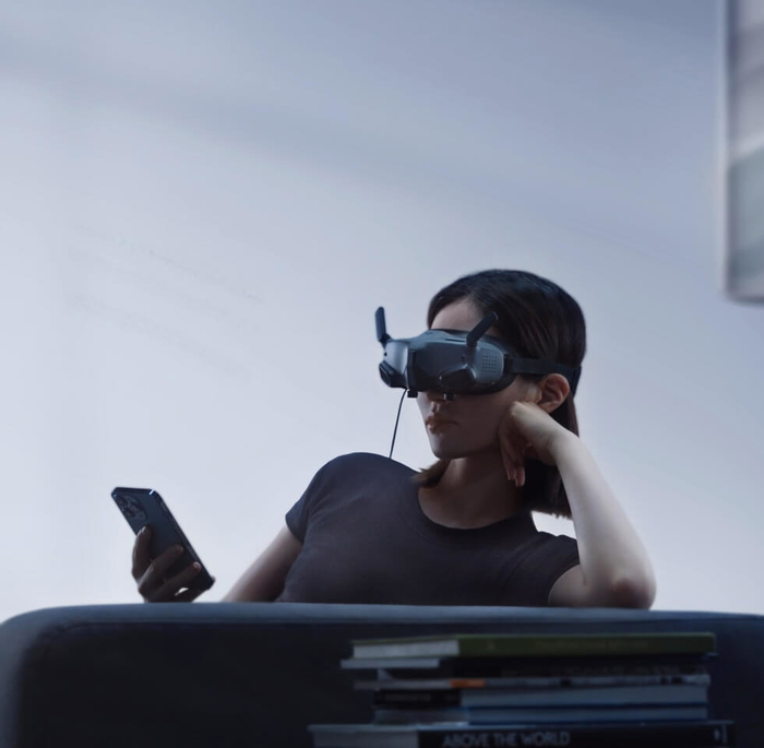 DJI Goggles 2 飞行眼镜支持头部追踪功能,仅重 290 克,相比 DJI FPV 飞行眼镜 V2 轻了 30%,面罩材质柔软,与面部贴合度高,大幅改善了漏光问题。