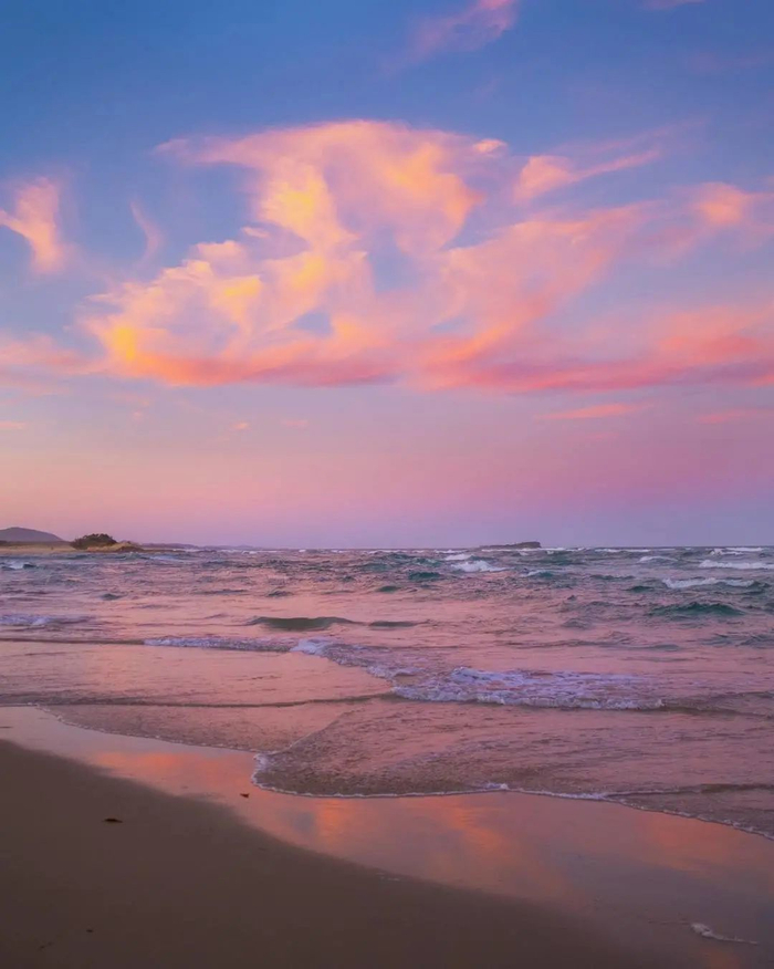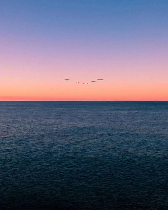 而这一视角,海水似乎迎面而来,不禁让人产生一种压迫感,此时海的深邃与晚霞的温柔共同碰撞出奇妙的火花。
