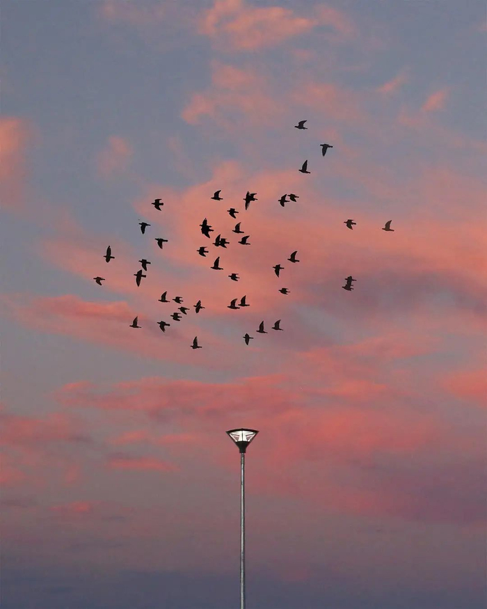 他镜头下的晚霞尽是温柔浪漫,部分作品也带有超现实主义色彩,治愈的色调下充满想象空间,独具一格,看起来很有意思。
