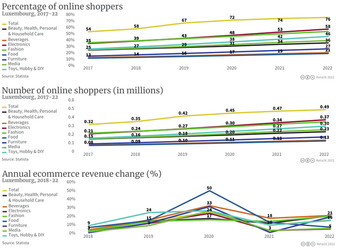据悉,荷兰和比利时的线上购物支出持续上升,但与卢森堡相比水平仍较低。