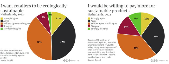 气候与环境保护不能仅靠政府来实现,企业和消费者也应参与其中。约有一半的荷兰消费者希望零售商实现生态可持续。更多的人(72%)希望零售商有相对公平、良好的工作场所,并希望相关公司也能提供高标准的福利待遇。