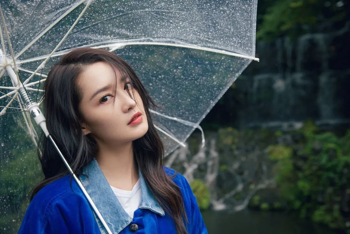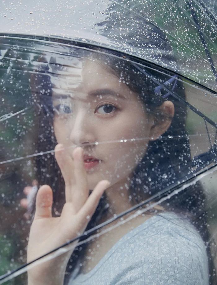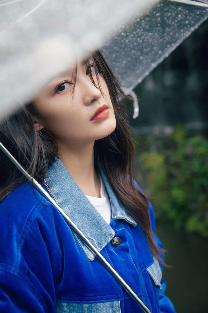拍摄时,可将伞面倾斜至镜头面前,模特“躲”在伞里望向镜头,脸上可略带一丝丝情绪感~
