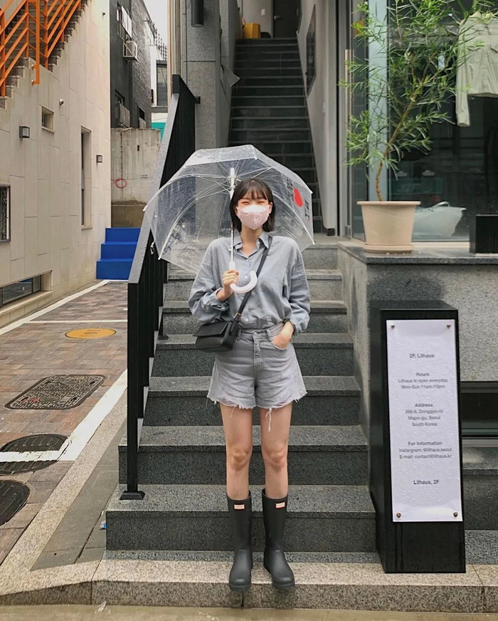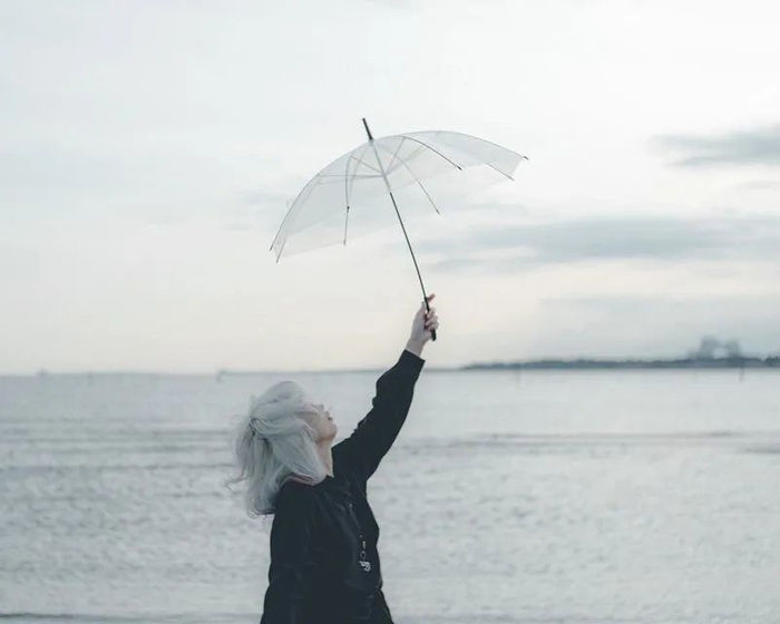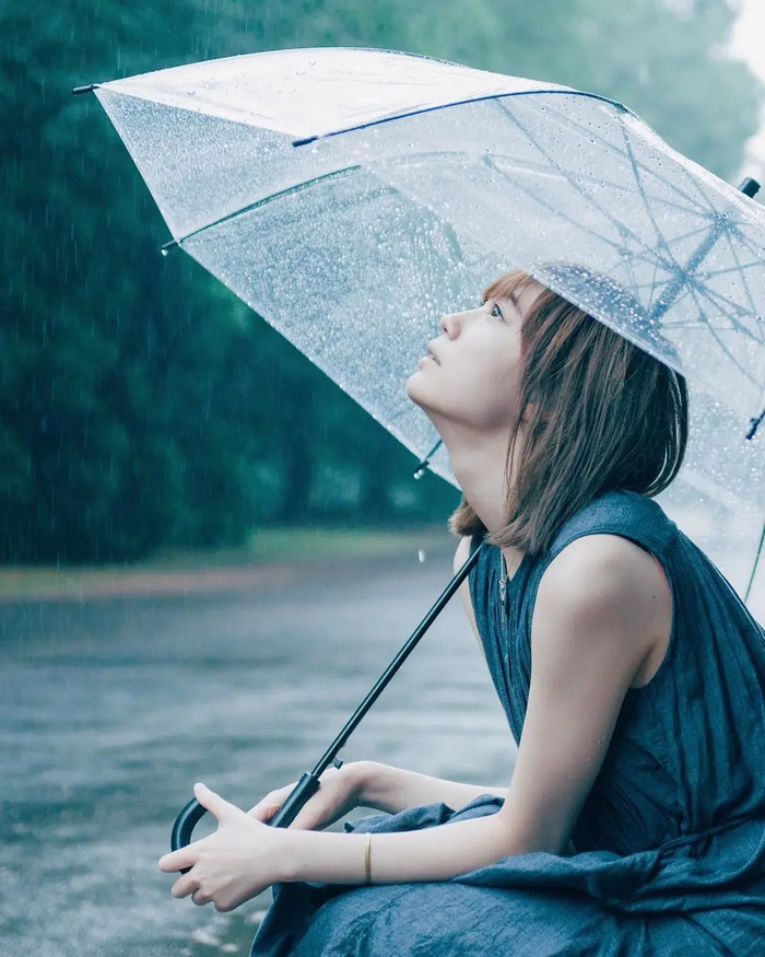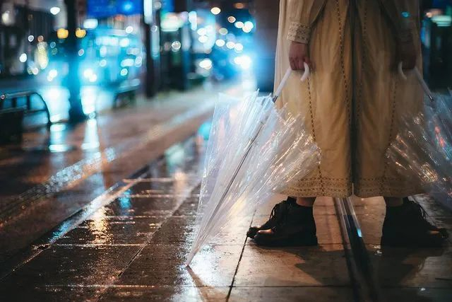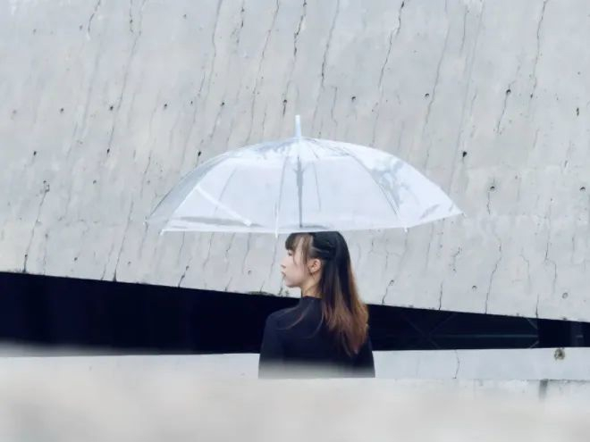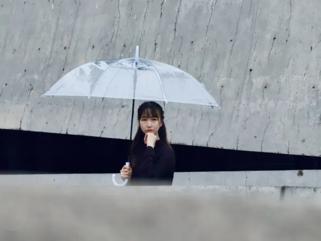 当你想尝试拍摄不同于日常的撑伞照时,那就试试放低透明伞的位置。伞柄朝上,伞面朝下,是不一样的视觉感~
