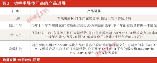 从国内厂商看,根据NE时代数据,今年1-9月乘用车功率模块装机量排名中,比亚迪半导体、斯达半导、时代电气的市场份额分别为21.1%、15.8%和12%,分别位居第二、三、四位(见表2)。